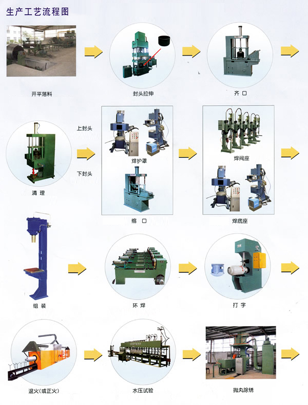 創(chuàng)辦于83年的泰州市羚驊機械有限公司是國內(nèi)設計生產(chǎn)液化石油氣鋼瓶成套生產(chǎn)設備的企業(yè)。產(chǎn)品包括:開平落料線、封頭拉伸成型機、齊口機、縮口機、清理去毛剌機、沖孔機、焊瓶嘴機、焊護罩機、焊底座機、投瓶…